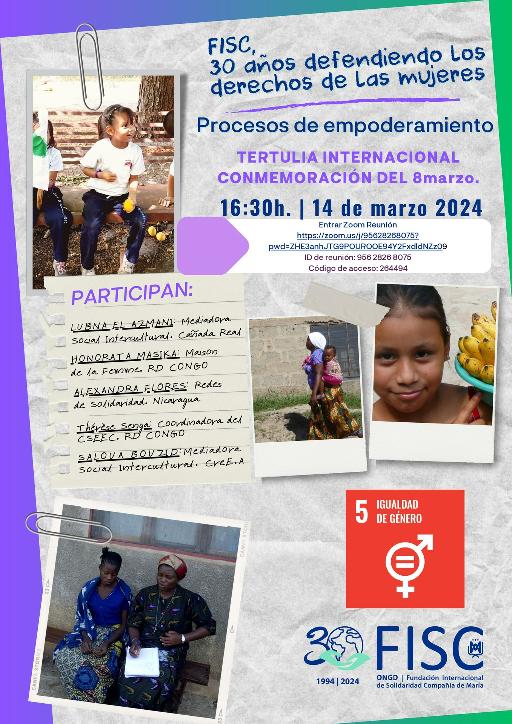 El 14 de marzo FISC a las 16:30 horas va a celebrar una tertulia internacional en conmemoración del 8 de Marzo sobre procesos de empoderamiento vía Zoom.