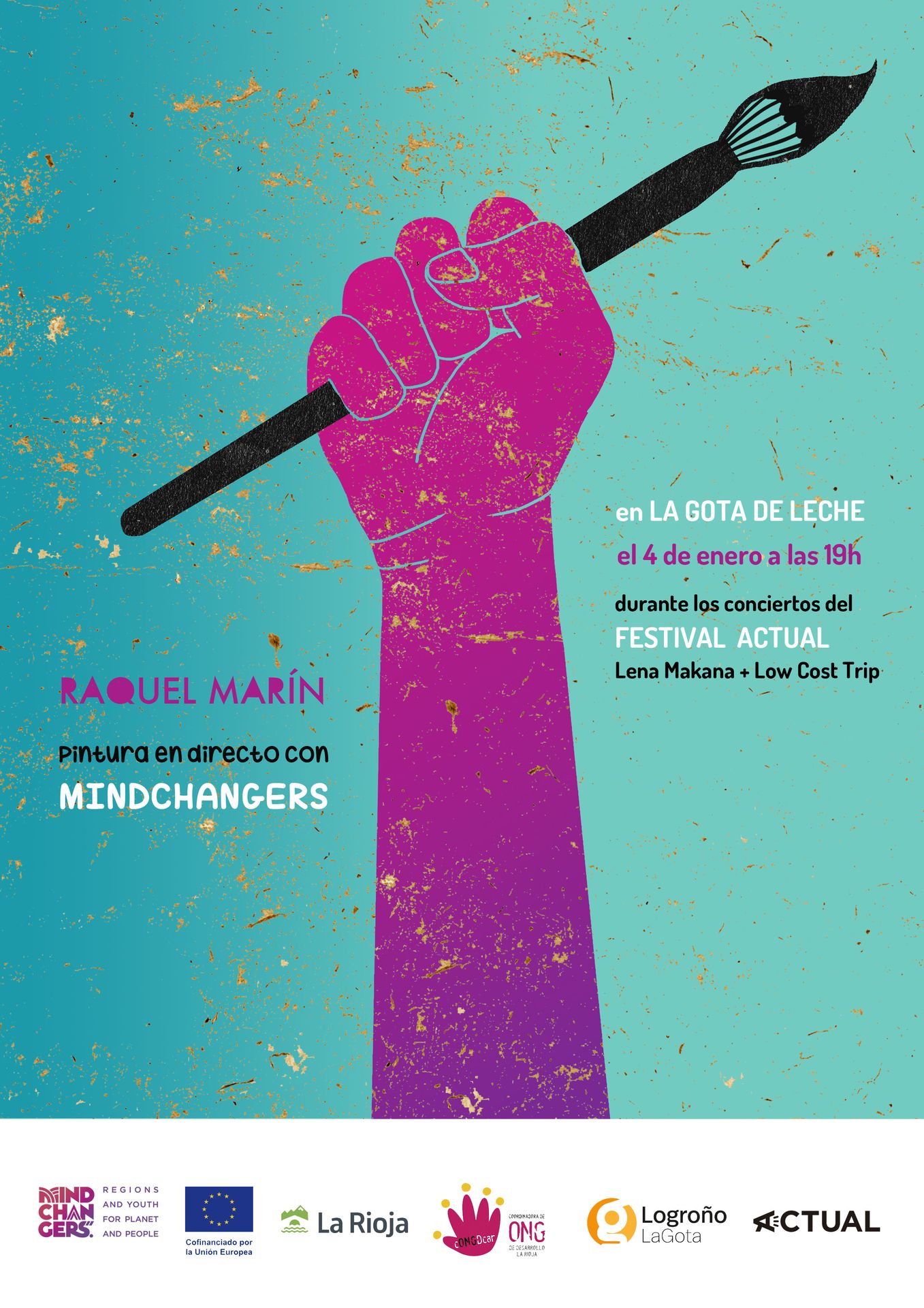 Además la propia Raquel Marín realizará el día 4 de enero a partir de las 19 h. en La Gota de Leche, durante los conciertos de Actual Urbano, un painting show en el que elaborará en directo una pieza artística sobre las migraciones.