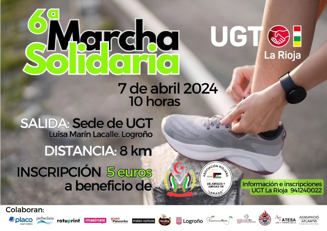 UGT va a organizar su VI Marcha Solidaria de UGT La Rioja, que tendrá lugar el próximo 7 de abril, a las 10.00 horas desde la sede de UGT (c/Luisa Marín Lacalle 1, Logroño), con una distancia de 8km.