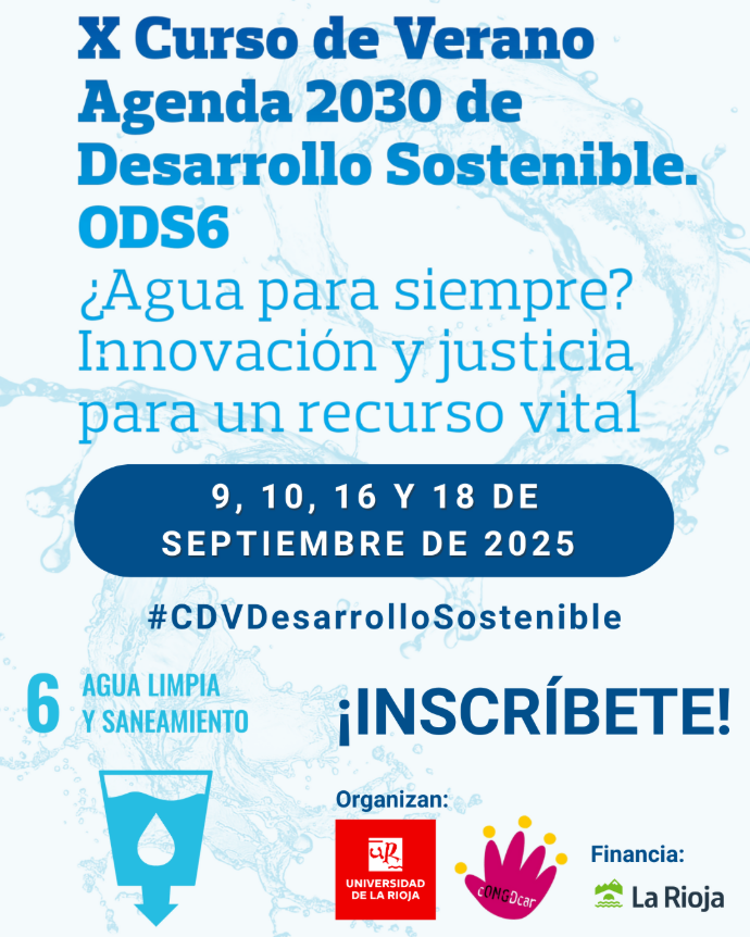 X Curso de Verano Agenda 2030 de la Universidad de La Rioja y la CONGDCAR: ODS 6 ¿Agua para siempre? Innovación y justicia para un recurso vital